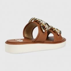 Γυναικεία Σαγιονάρες Δερμάτινες παντόφλες MICHAEL Michael Kors Scarlett Double Band χρώμα: καφέ
